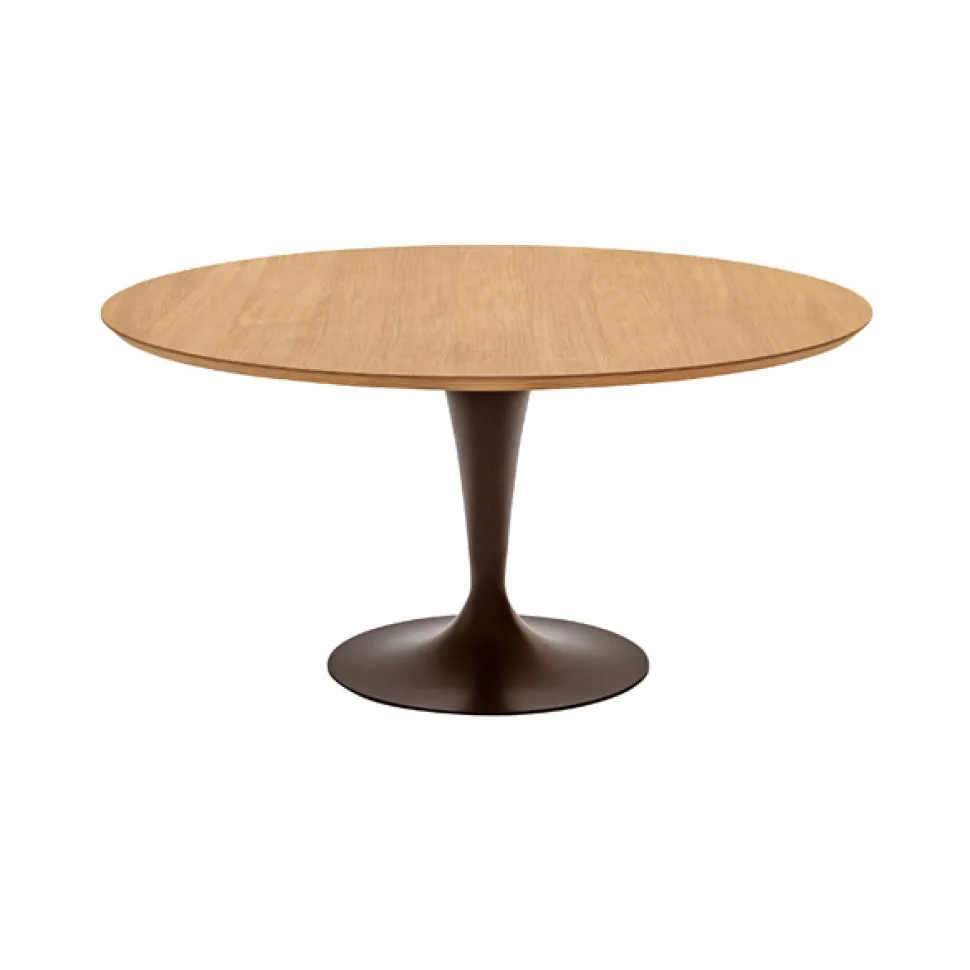 Elegant and light like the namesake glass, this table expresses different personalities according to the chosen materials and colour combinations: from the top in lacquered glass, Materia, wood, ceramic or hpl, to the base in lacquered or polished chrome metal.