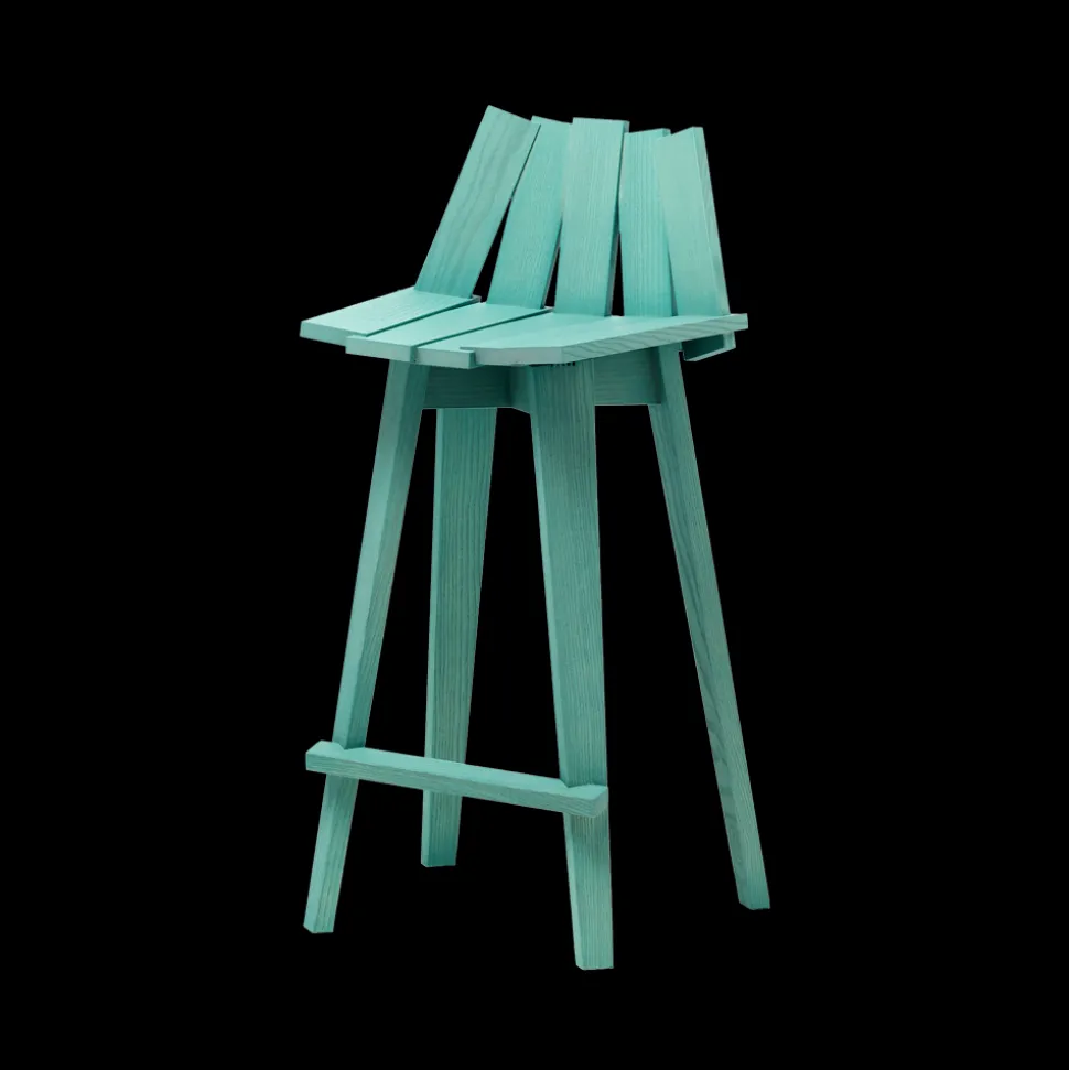 The particular structure of this stool is made with single pieces of solid wood meticulously cut, worked and intersected creating an ironic stool with a familiar look.