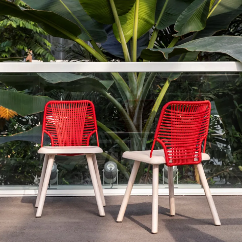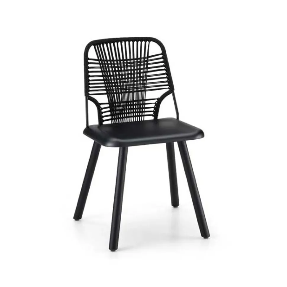 Hybridization is the concept behind the Jackie collection, designed by Emilio Nanni – a seat in which the stable solid wood structure meets a welcoming backrest in metal rod covered with a rope weave. Jackie is enriched with new colors, very decisive and characterizing, in a fruitful and harmonious dialogue between heterogeneous materials, ethnic hints and craftsmanship, creating the innovative design of a perfect seat to connote any contract environment with refinement.