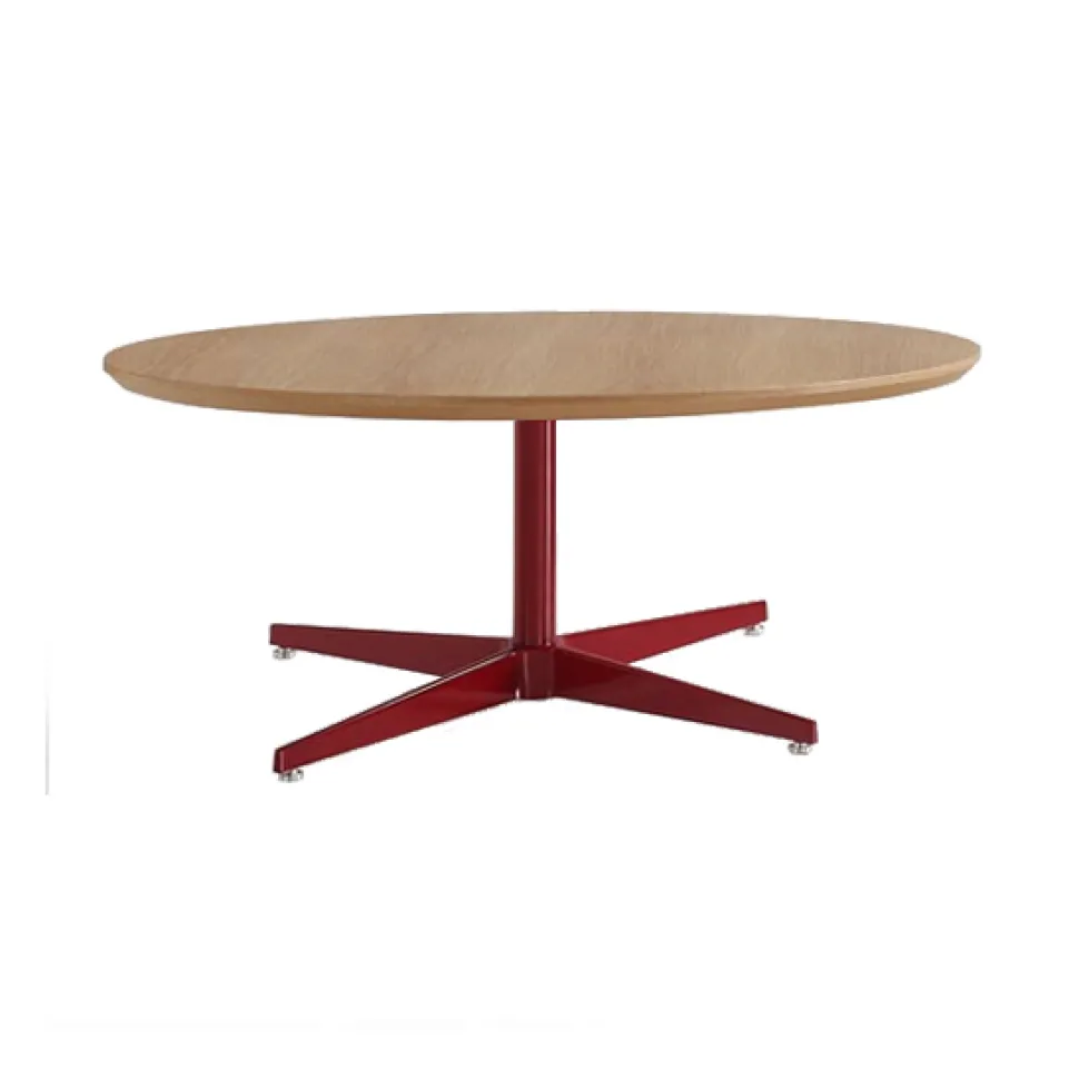 Base in aluminium with steel column lacquered or in chrome, top in white laminate, lacquered MDF, HPL or in MDF with oak, wenge or walnut veneer