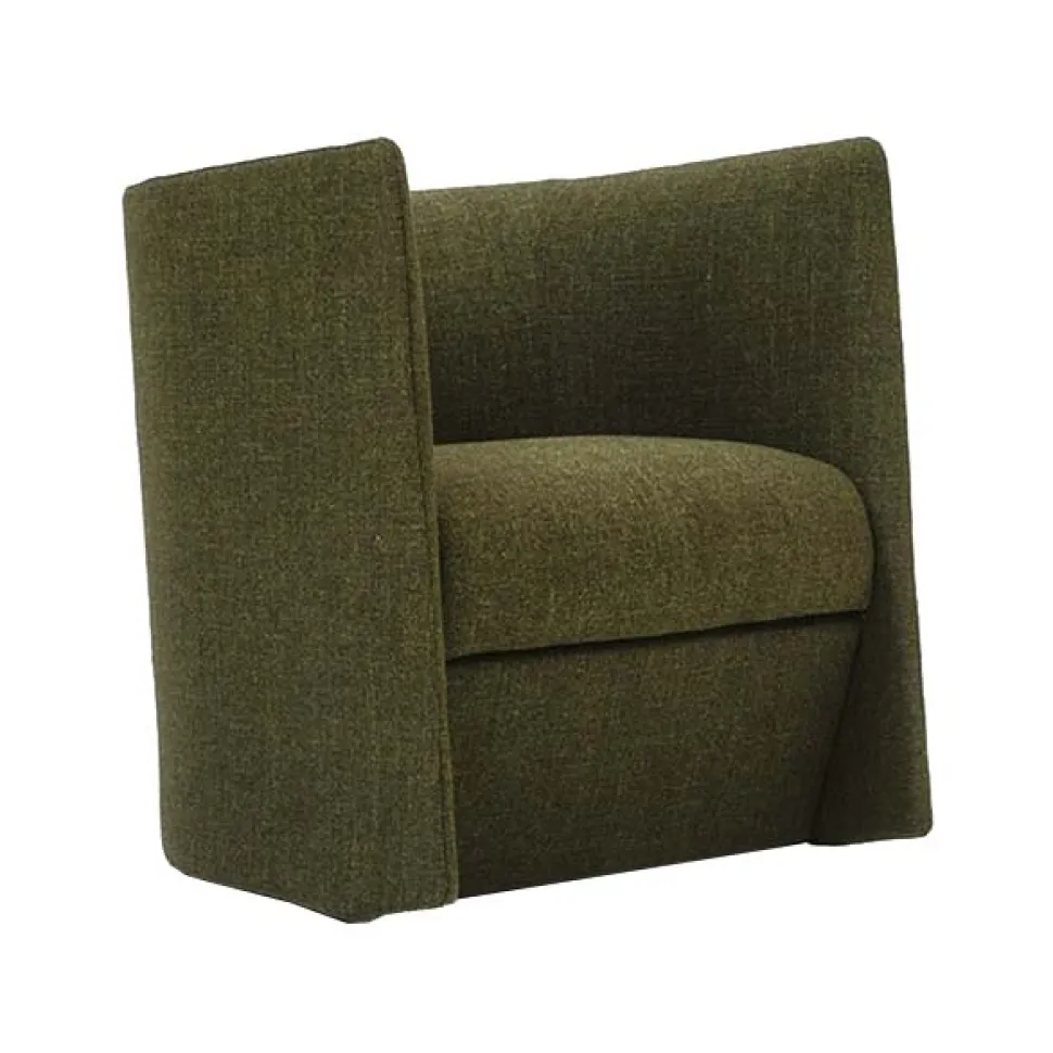 of three- dimensional extrusion, starting from the silent language of human body. In fact, the armchair “Pisa” is a minimal object, an intimate and reduced space, created to enfold the person, leaving space to his most hidden expressions, but without forgetting its comfort and daily use. Therefore, the characteristic lines of “Pisa” – the slightly reclined backrest and the cut profile – come out when you seat on it, when the objectivity of empty elements, curves and geometric shapes, is balanced by a methodical plan based on the gestural expression of everyone.Mainly designed for public spaces, offices or hotels, “Pisa” is an upholstered armchair with a small size, suitable for narrow spaces, where it can be used to furnish warm and welcoming public areas.