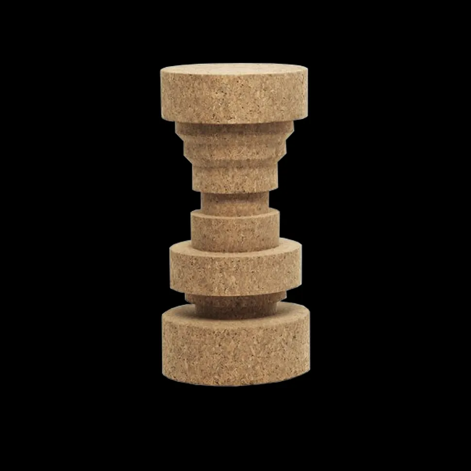 King & Queen are stools or accent tables in turned cork. Inspired by the pawns on the chessboard, especially by the pawns of the king and queen.