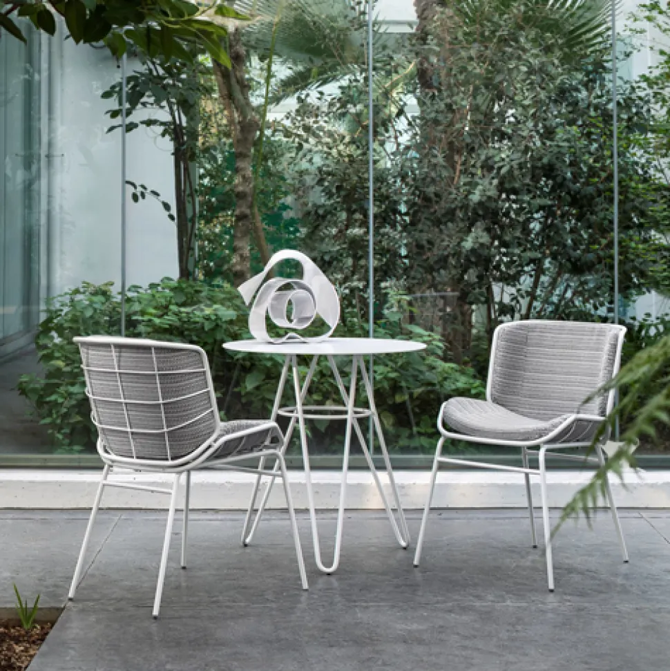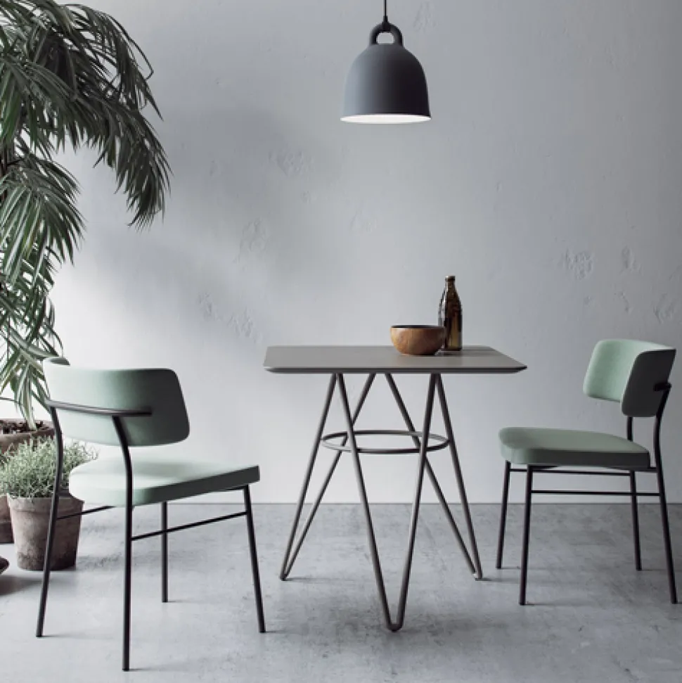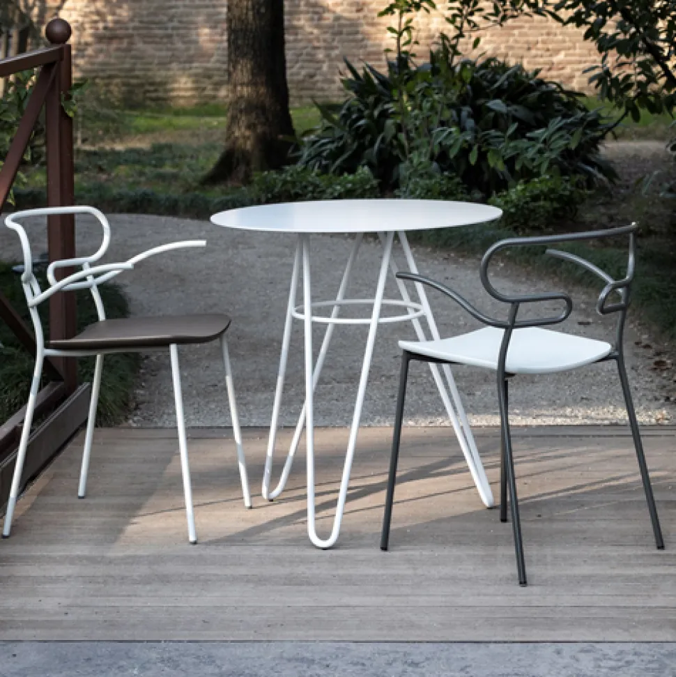 The metal or HPL top, personalizes the environments, both round and square, with many variations and possibilities.