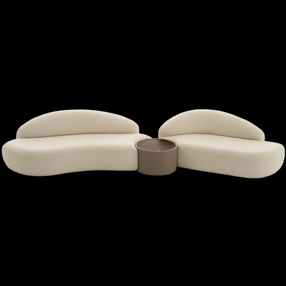 Spin sofa is the epitome of lifestyles among new generations, playful and casual. Design with the organic and asymmetrical form, with the left and right modules connected by a round storage coffee table in the middle, sofas could be placed in different angles for different scenarios.