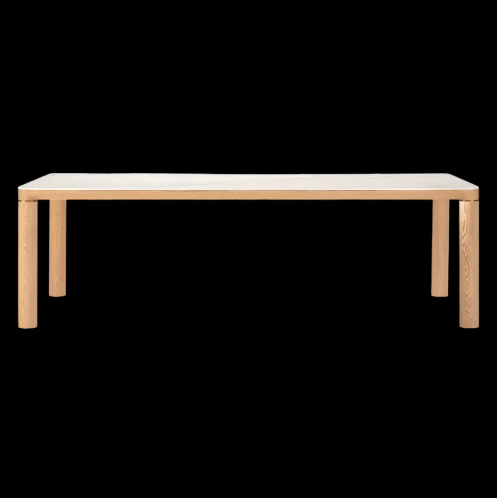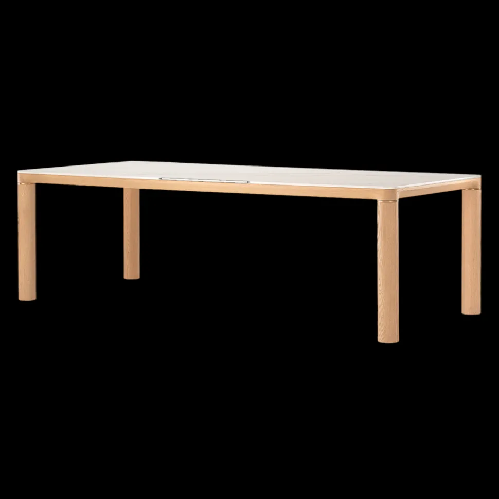 Characterised by the round corner table legs, which create a beautiful silhouette in a balanced interaction with the harmonious proportions of the table top.