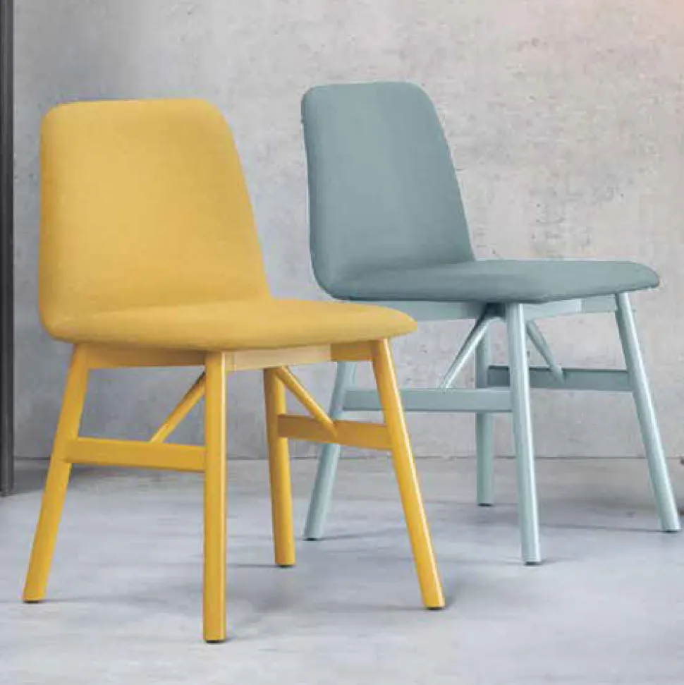 Base in solid beech in natural, stained or lacquered in a selection of colours, upholstery in a selection of fabrics or leather