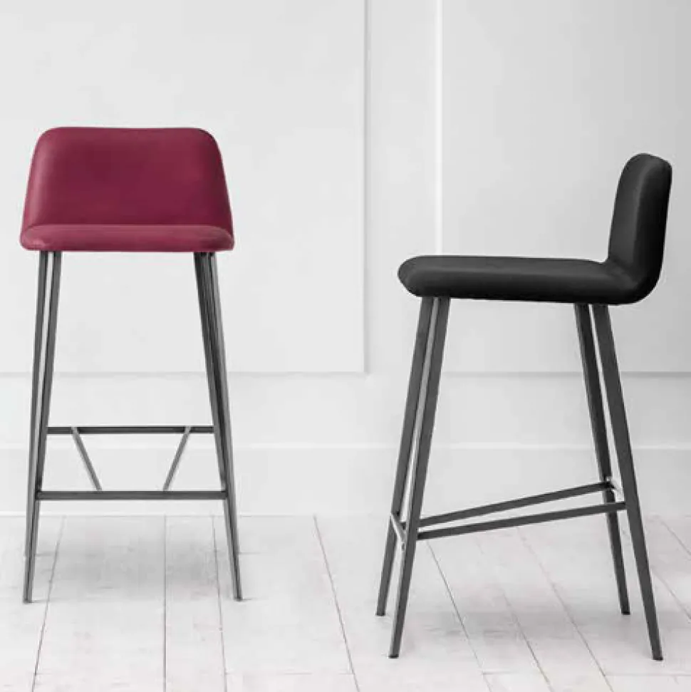 The overall vision created by the harmony of the beveled shapes, the full volumes and the soft but minimal design is recreated in a more rock, metallic version, thanks to the structure that lightens the seat. A wide range of colors for the padding, covered in velvet, or leather or eco-leather makes it suitable for both the home, kitchen, dining room, study, and in contract environments. A transversal proposal to create welcoming domestic settings or to furnish contract spaces.