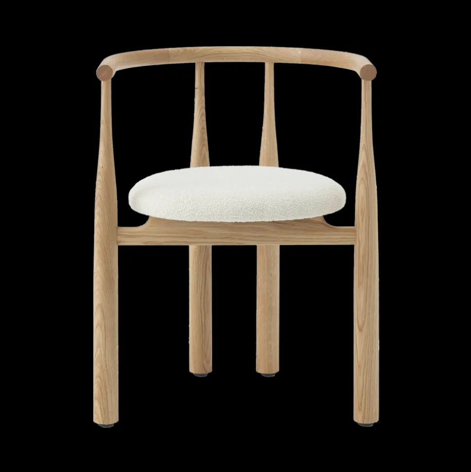 A throwback to mid-century modern? Not quite. Extreme proportions lend themselves to an elegant and surprising form in this update to an old classic. The smooth, yet decisive, shift between slim and solid, which creates the Bukowski chair?s curvaceous legs, is played out like a lively dance with the material. Meanwhile the balance of the weight towards the ground gives the chair a strong and monumental feel. Centred in the sculptural structure is an upholstered seat, opening for different expressions through the combinations of wood and textile. With its bold geometry, the Bukowski chair shows off a striking silhouette, instantly recognisable, indefinably familiar, and completely its own.