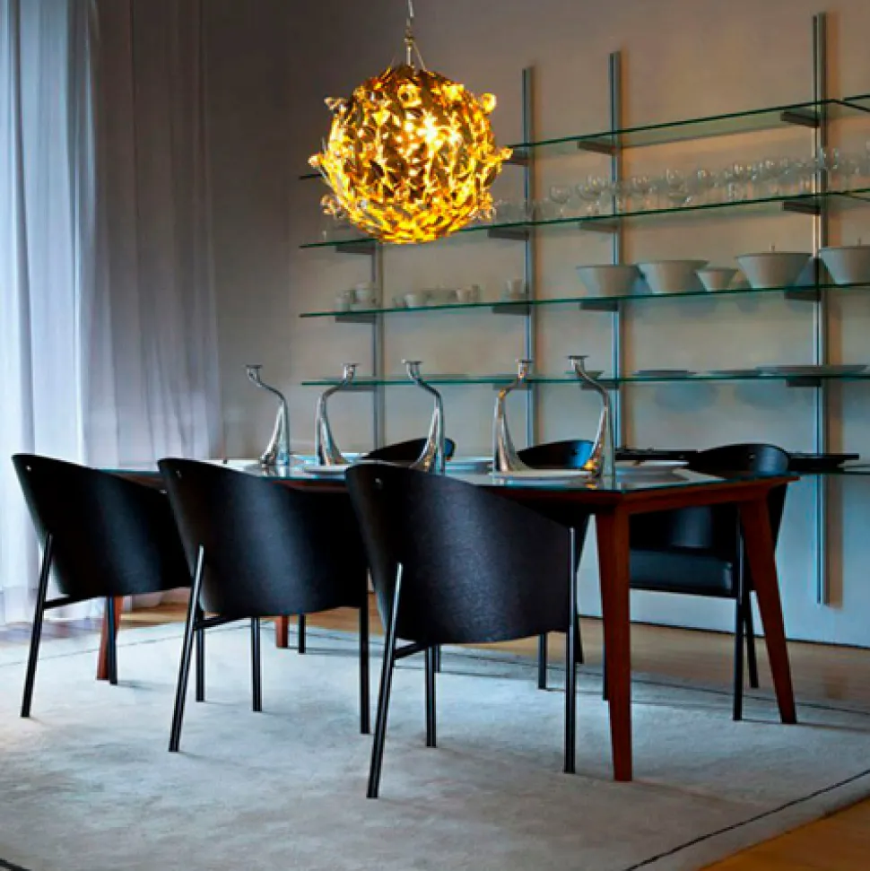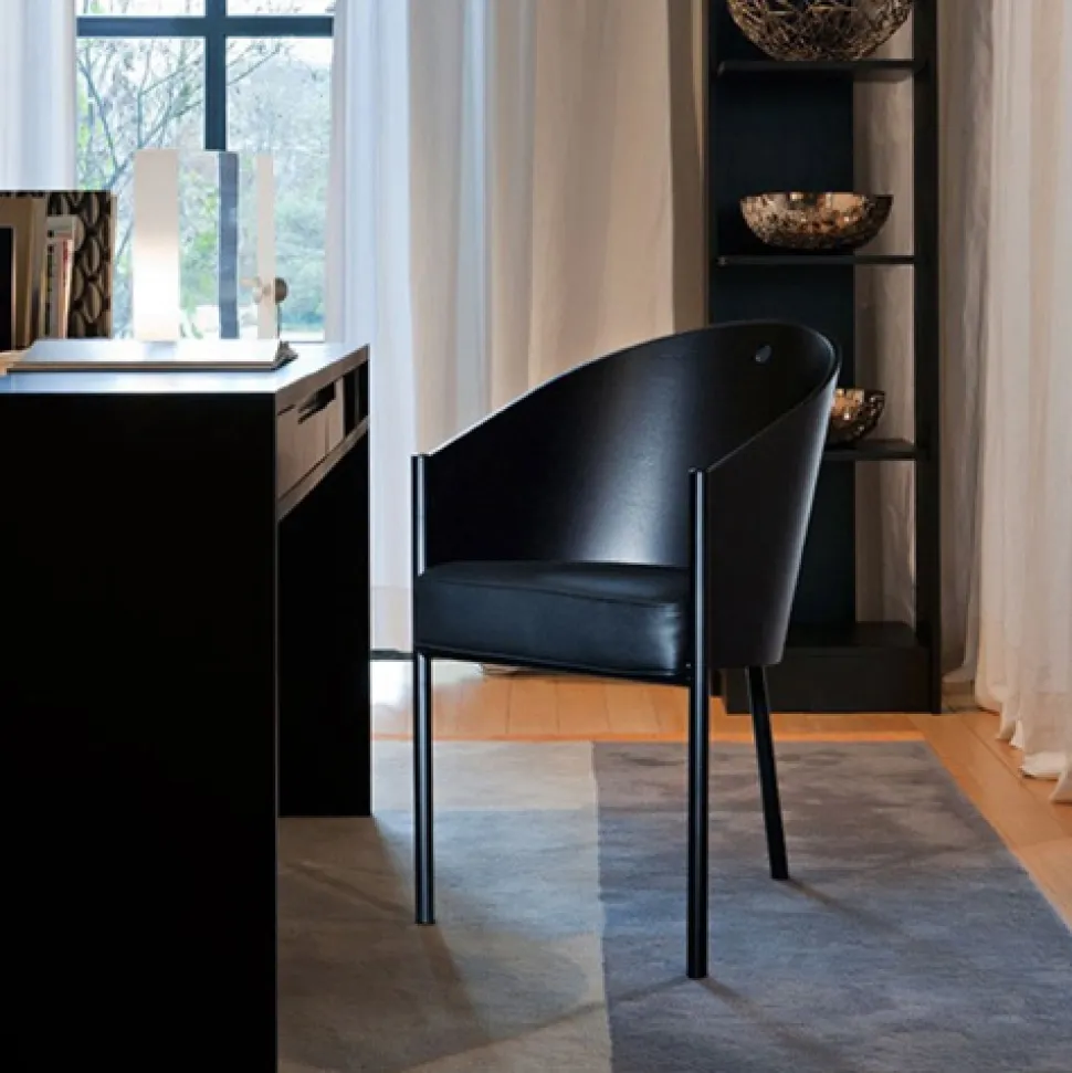 Costes chair debuted in 1984, marking the beginning of the partnership between Philippe Starck and Driade. A designer, formerly unknown in Italy, creates one of the world’s most iconic object. Designed for the once homonymous, now disappeared Parisian cafe, owes its timeless success to the absoluteness of forms: a dark wooden embracing structure with three highly tilted legs.