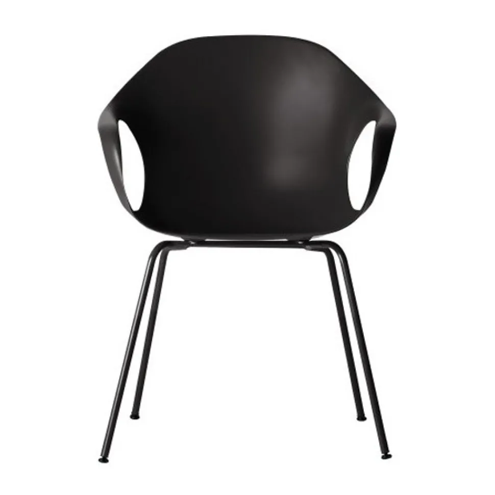 Metal legs in chrome, satin chrome or lacquered in matching seat colour, polyurethane seat in white, beige, black, terracotta brown, brown, olive green or light blue, optional removable seat cushion upholstered in fabric