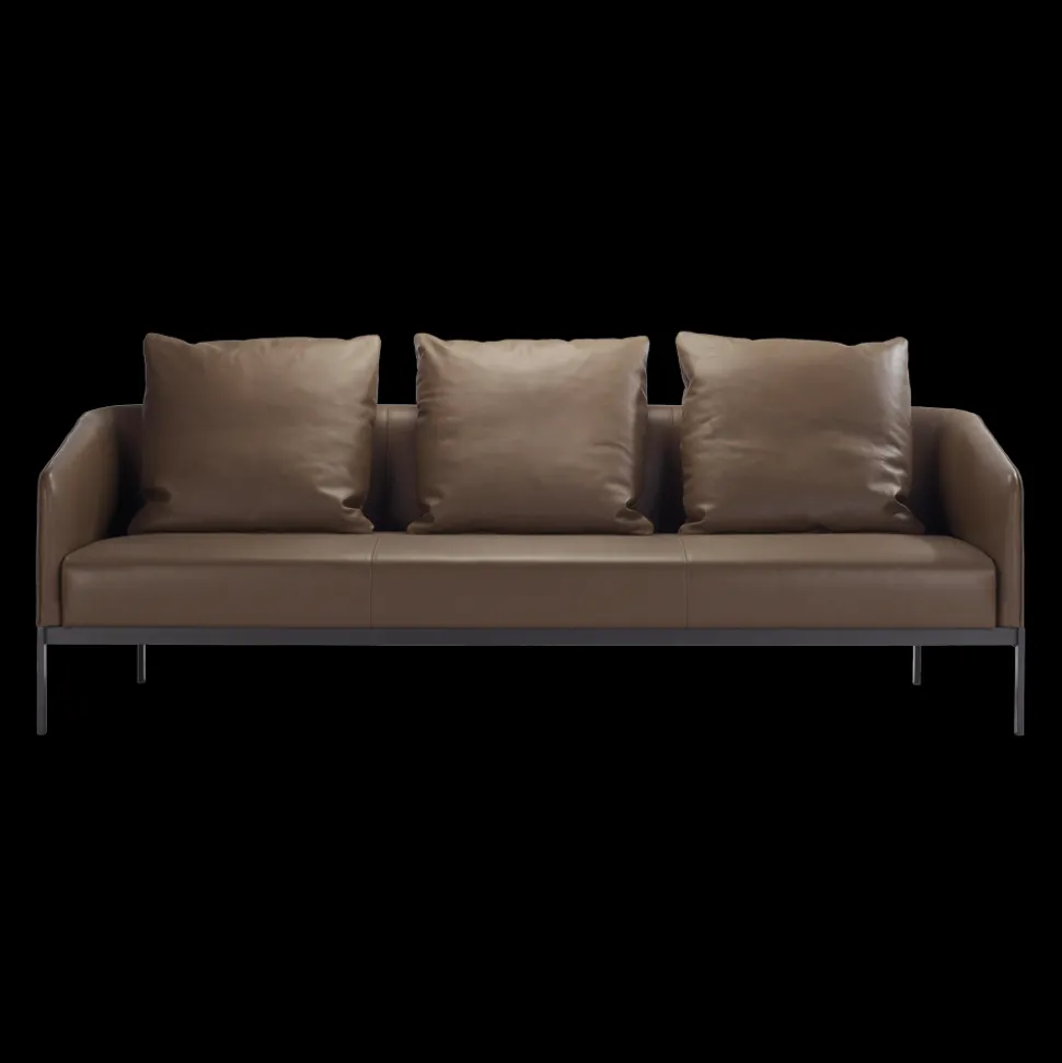 Legs in metal painted dark grey, external shell in veneer in walnut or stained oak, upholstery in fabrics or leather