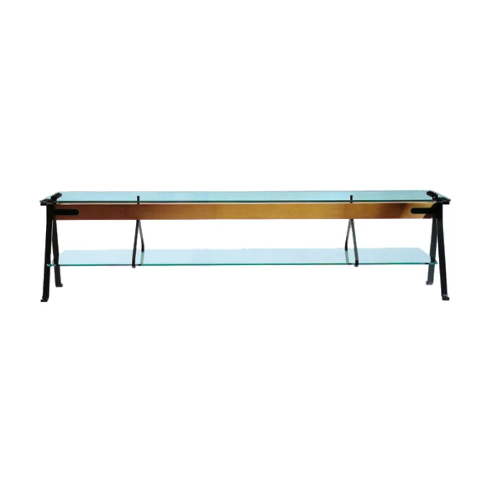 Very lucidly, Enzo Mari decided to realize this tables collection with transparent crystal tops in order to valorise the harsh simplicity of steel sections bases. Designed in 1973 for Driade, uninterruptedly producted since then, these pieces can be certainly numbered among the most successful of the Milan master.