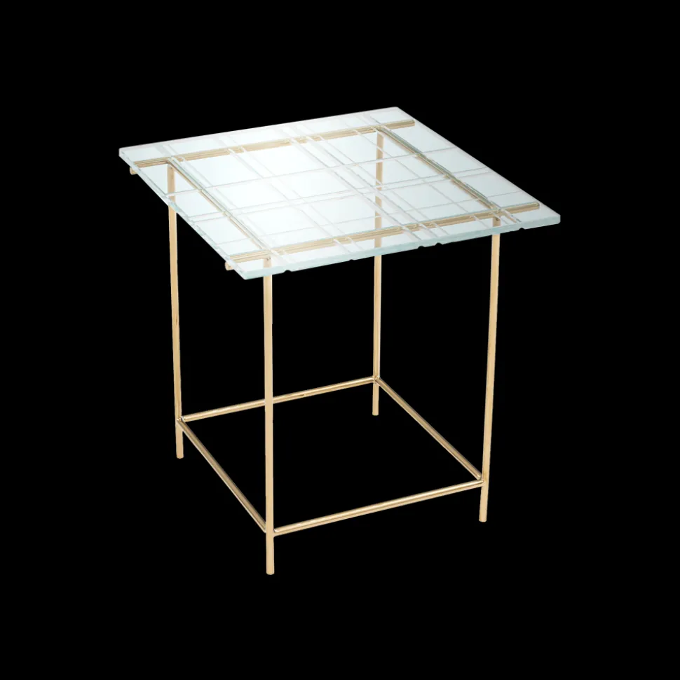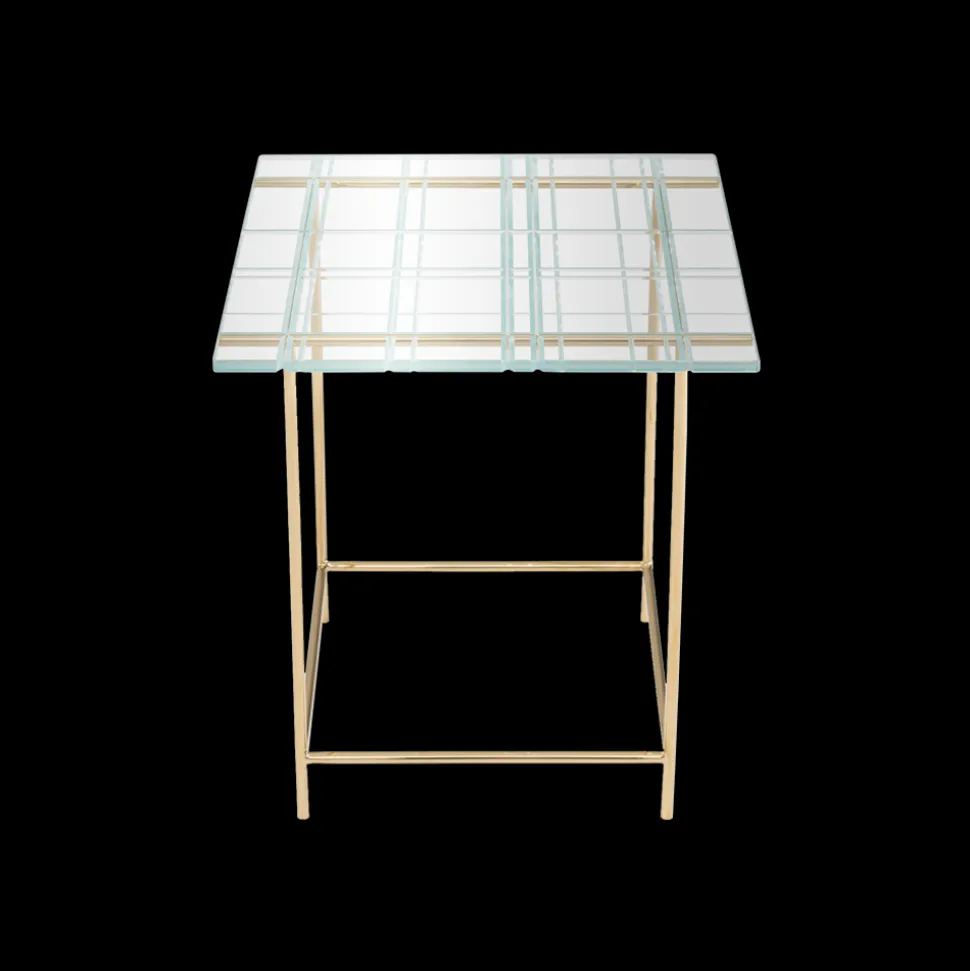 Base in stainless steel plated champagne titanium or black titanium, top in tempered clear glass