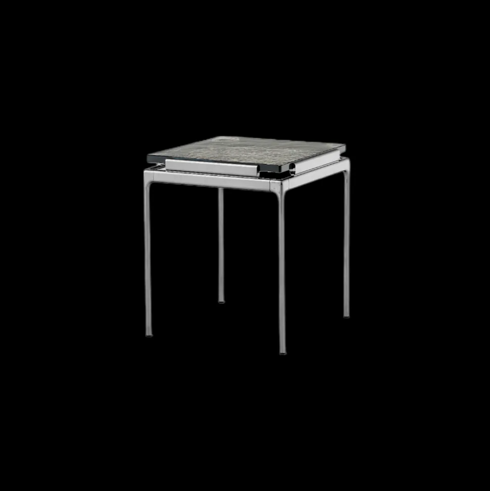 Structure in aluminium plated dark chrome, top in cast glass tinted smoke