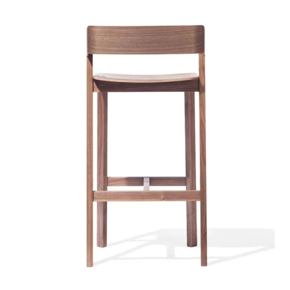 The Merano bar stool combines the bottom design made of solid wood with harmonic shapes of bent plywood in the seat and backrest. Thanks to the production technology used, it is remarkably light and does not contain any screws or metal pieces. Together with the chair and the low bar stool design, it creates a set with the Merano armchair.