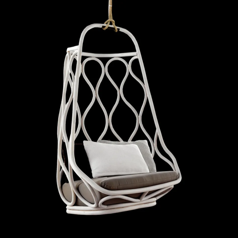 Nautica is a hanging seat that pays homage to one of the first pieces produced by Expormim in the 70?s. Our commitment to the creation of a unique design that would recover and rethink the traditional use of rattan was matched by the will of delivering something different, unexpected. Natural world is filled with contrasts we tried to evoke through a delicate and ever-changing game of shadows that brings to mind the reflections of light upon sea waves.