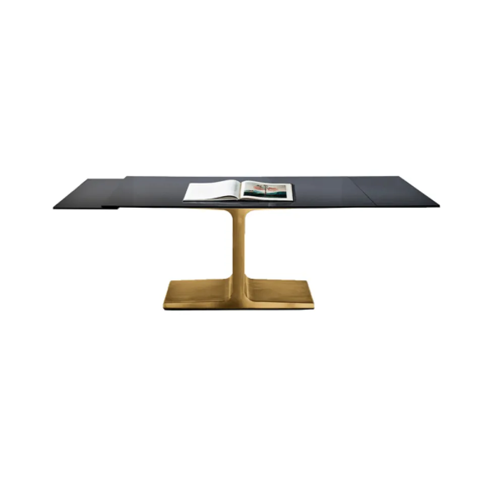 Palace dining table and its unique design become the outright protagonist of the living area, thanks also to the new shapes. An important element that sets the mood of the whole room.