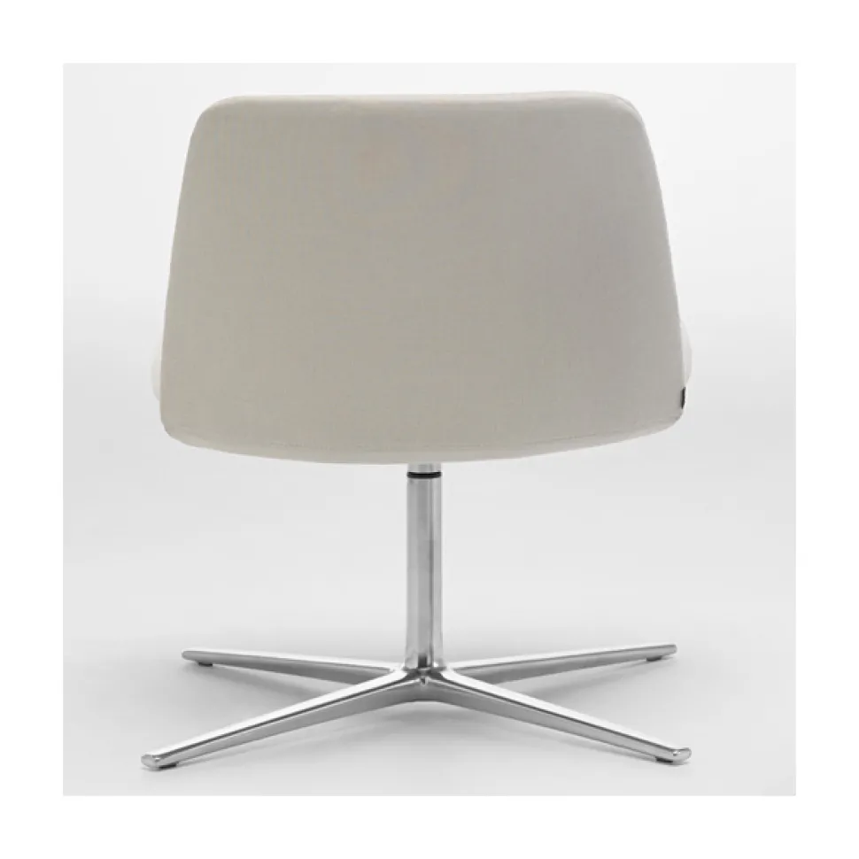 Base in aluminium lacquered or polished finish, upholstery in a selection of fabrics or leather