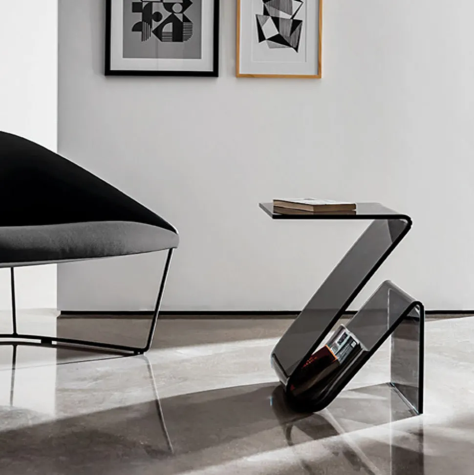 Pureness and minimalism are the keys to understanding a product which combines simplicity and functionality. Entirely realized in glass it can be a magazine holder and a practical side table.